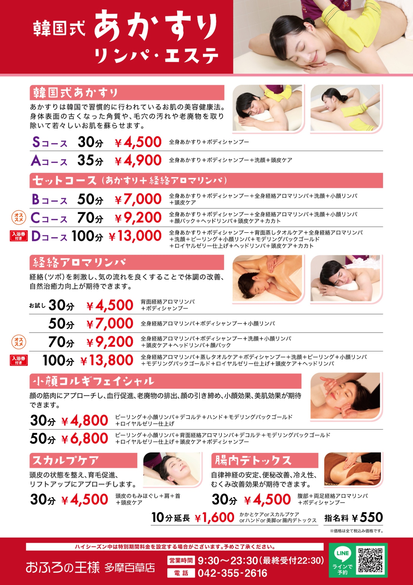営業時間 9:30〜23:30 受付時間 9:00〜22:30 Tel.042-355-2616